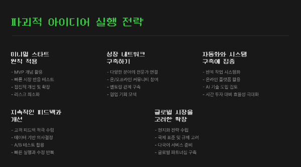거창한 사업 계획서나 완벽한 제품을 기다리지 마세요. 최소한의 기능을 갖춘 제품(MVP)을 빠르게 출시하고, 시장의 반응을 보며 개선해 나가는 것이 현명합니다.